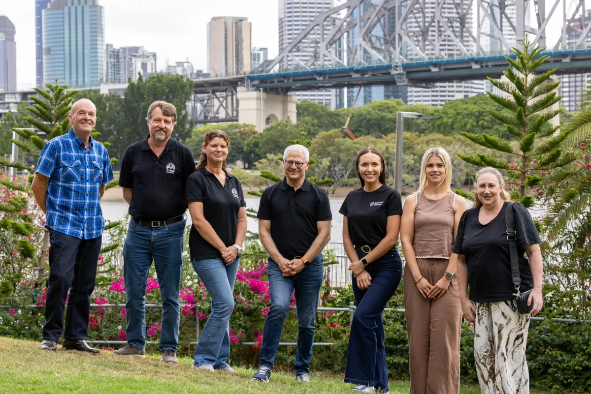 Image details: Frank Vella standing with Renée Chaplin, Vice President of Asia Pacific (APAC), and five Constant Contact customers.
