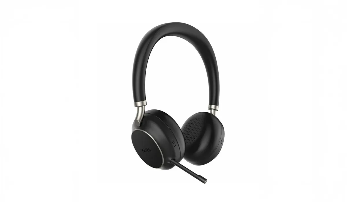 A key feature in Yealink's latest models is a retractable microphone boom arm. "We call it a hidden retractable microphone design. When you're walking on the street, you can wear it like a fashionable headphone, but when you have a meeting, you just slightly pull it out. The mic automatically unmutes," said Chen.